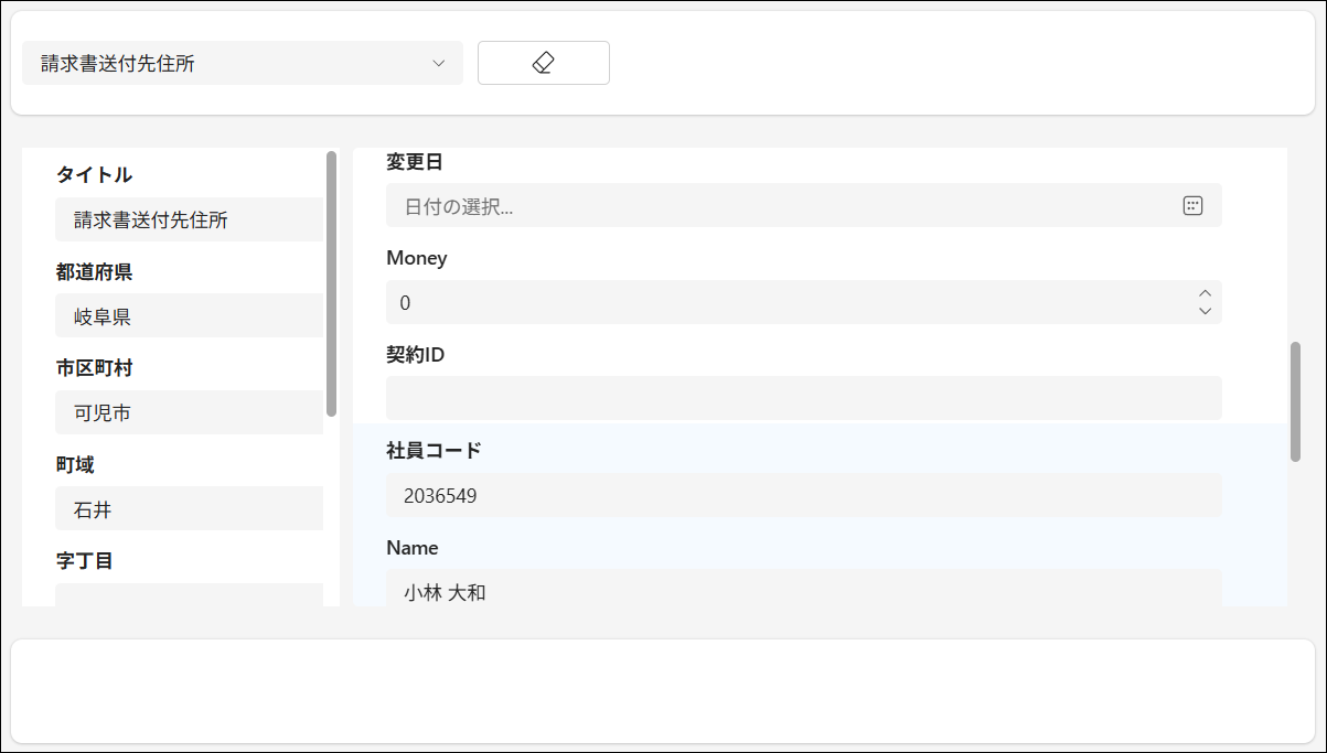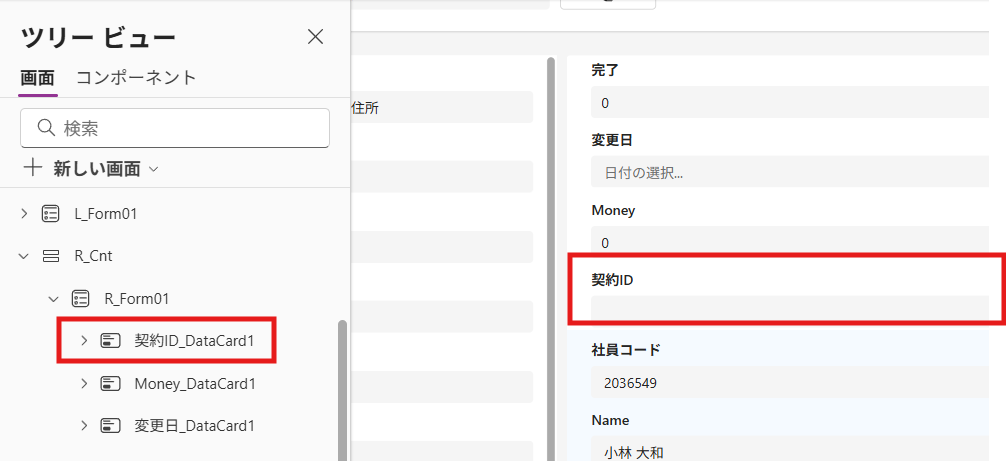 1つ目のformの一番下になっているデータカードを確認します(私の場合は「契約ID」です)