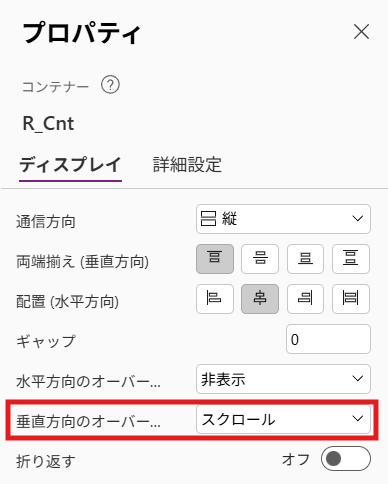フォームを格納する垂直コンテナのスクロールをONにする