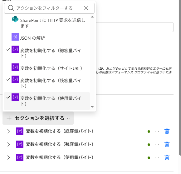 • 「Apply to each」の中に変数設定を入れると別の値が設定されるため絶対にNG
