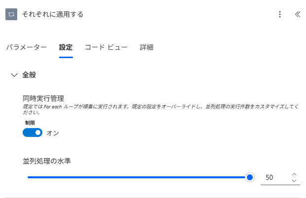処理に時間がかかるApply to eachがある場合は左記を変更してみてください