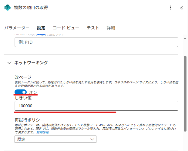 この設定を行わないと、デフォルトで100件までしかデータを取得してくれません。