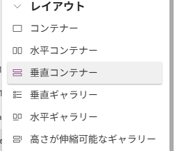 Apps画面の作成によっては自動で入っているかもしれませんが挿入で「垂直コンテナ」を用意しましょう。(既に挿入されている場合は不要です)