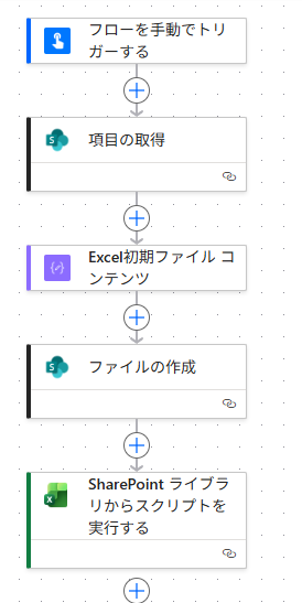 あらかじめ、今回使用する「○セルに○を書き込む」というOfficeスクリプトを作成しておきます。