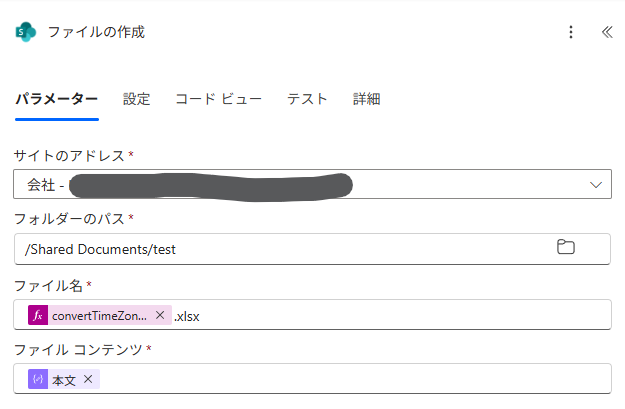 - @{outputs(‘ファイルの作成’)?[‘body/Path’]}