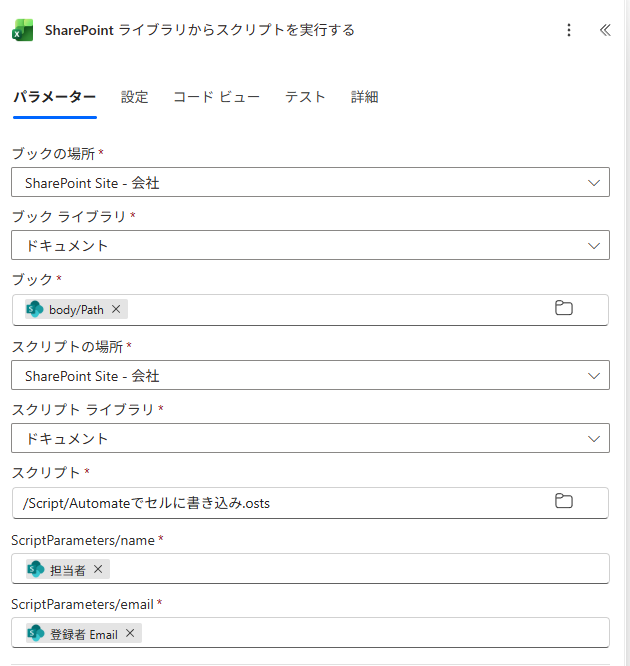 スクリプトが正しく設定されていれば、この時点で「ScriptParameters/●●」が表示されています。